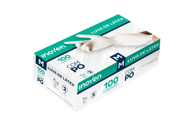 LUVA LATEX TAM M C/100 UN C/PO - INOVEN